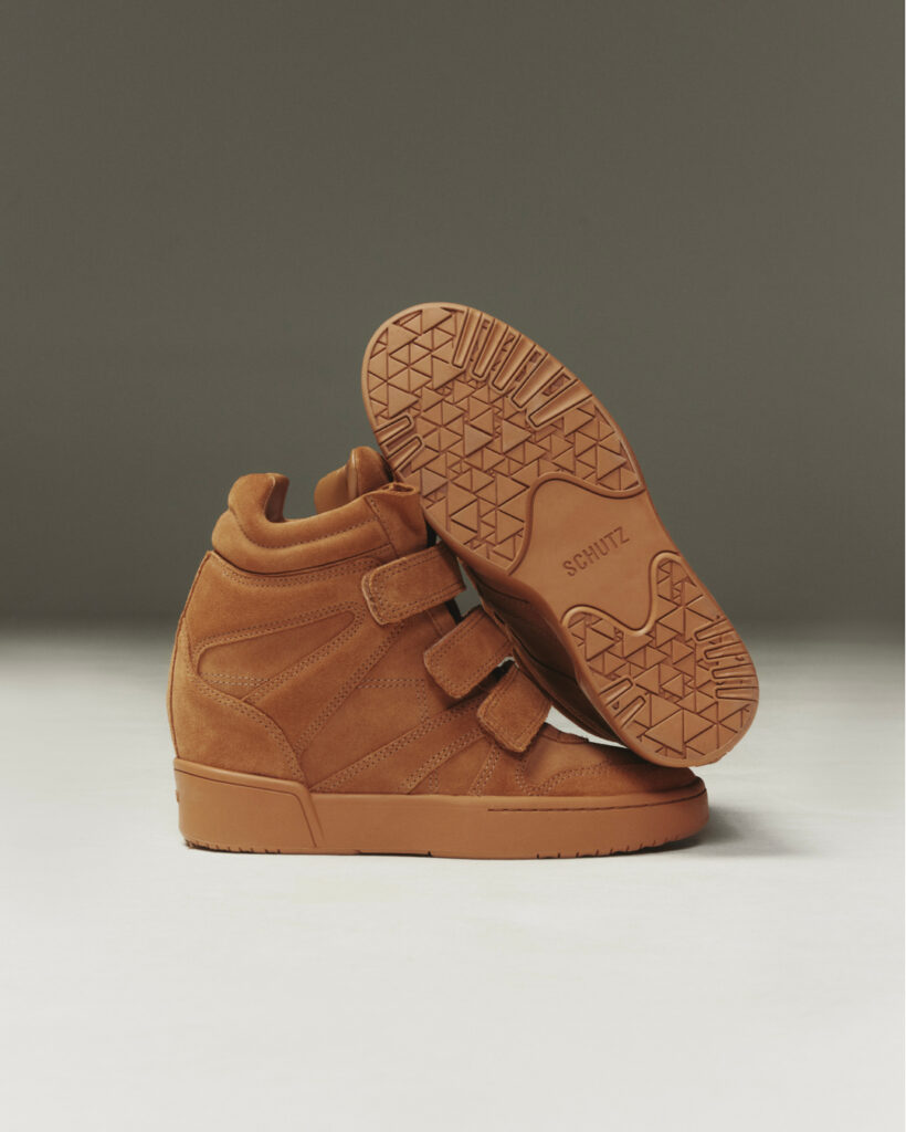 Em 2025, essa tendência ressurge com força. Marcas como Converse, Nike, Adidas e Schutz já lançaram versões atualizadas, que trazem um visual mais refinado, com camurça, tons neutros e detalhes modernos