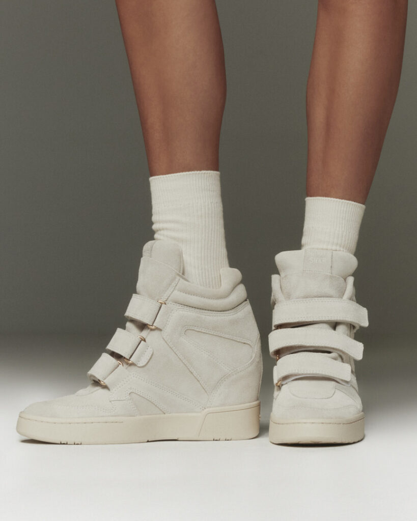 O tênis com salto interno, que faz a fusão entre o conforto esportivo e a elegância de um salto, foi um grande ícone dos anos 2010, especialmente com o modelo Bekett da Isabel Marant