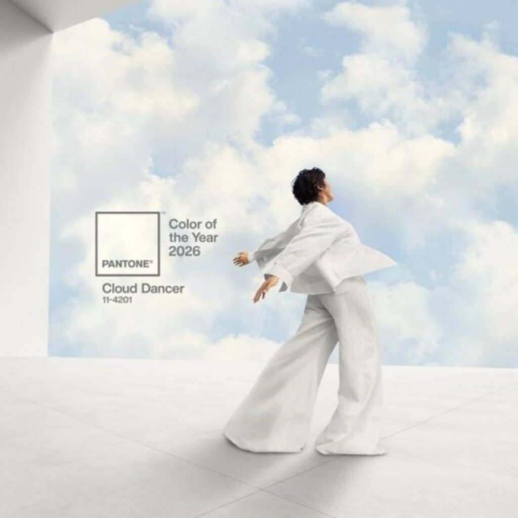 Mais do que uma tendência, Cloud Dancer representa uma nova estética para 2026. Uma cor que abraça o natural, o elegante e o essencial, refletindo o desejo global por leveza e autenticidade. Prepare-se para ver esse tom dominar vitrines, editoriais e, claro, muitos looks incríveis ao longo do ano.