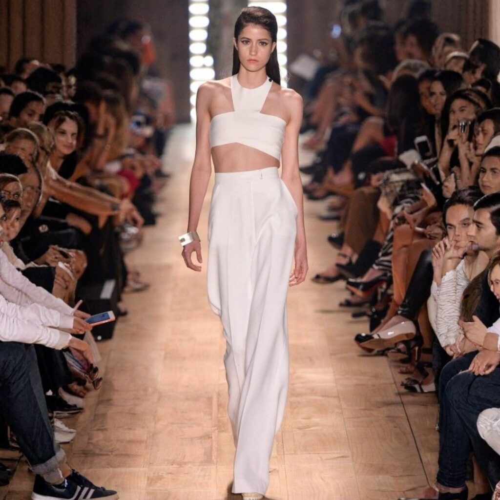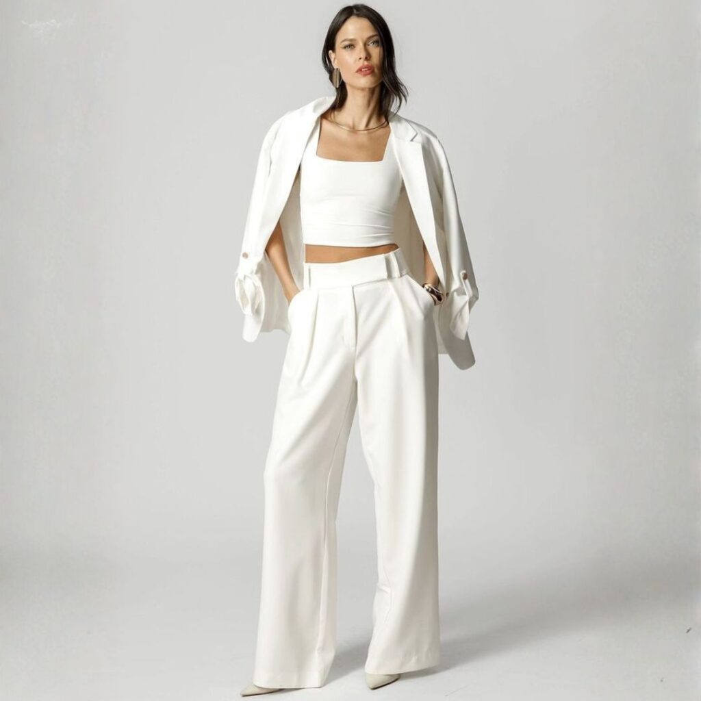 Diferente de um branco comum, Cloud Dancer tem profundidade. Ele carrega nuances acetinadas que deixam o visual mais sofisticado, permitindo combinações que vão do clássico ao contemporâneo. Essa versatilidade faz com que a cor se encaixe facilmente em diferentes estilos, seja em looks minimalistas, seja em produções mais fashionistas.