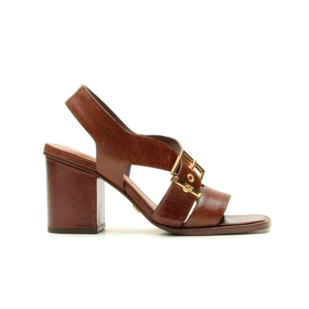 Sandália Vicenza Couro Salto Bloco Marrom