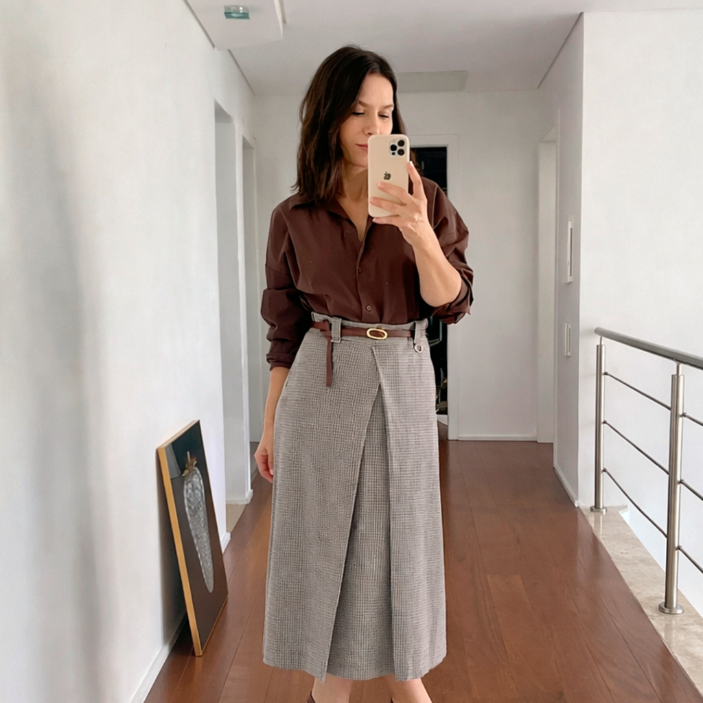 Essa tonalidade traz força, autenticidade e muita versatilidade, funciona tanto em produções casuais quanto em looks mais elaborados, acompanhando o movimento da moda atual que valoriza tons terrosos.