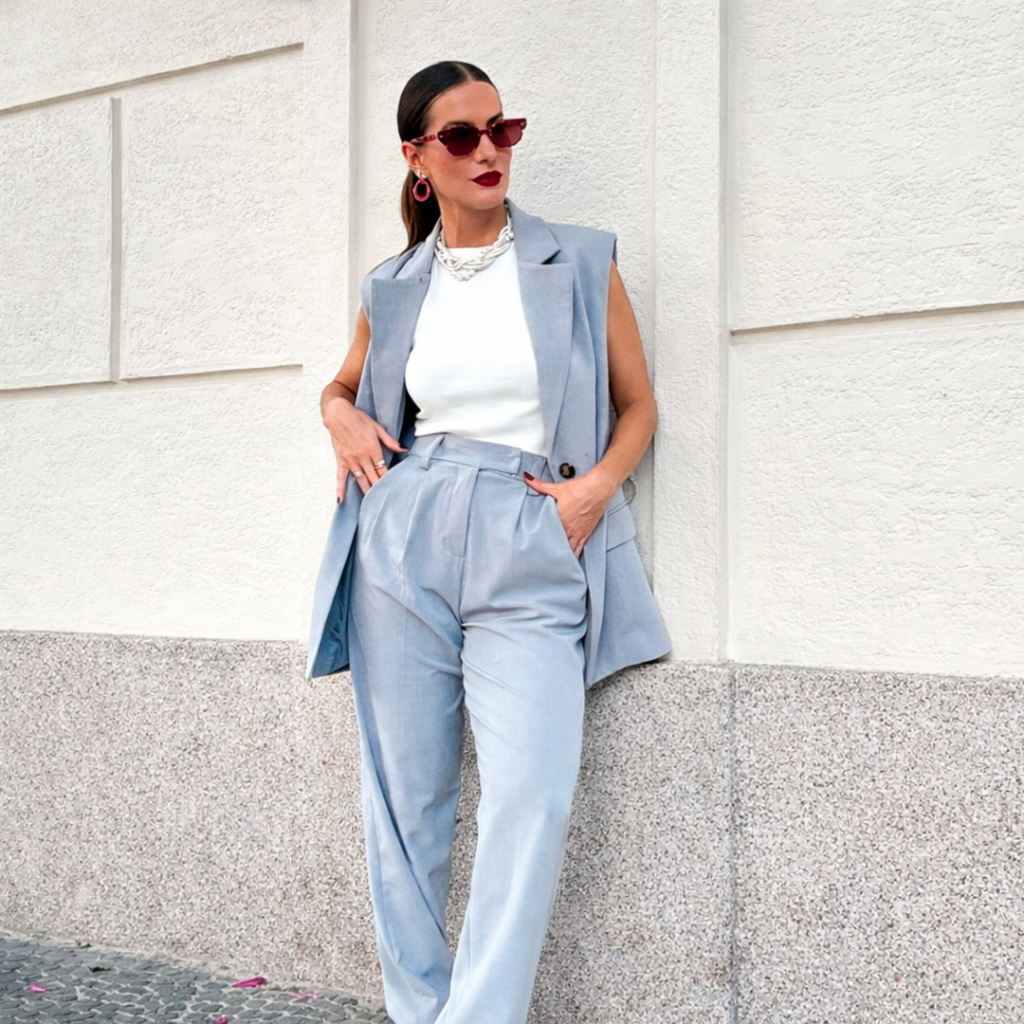 Combine com vestido midi fluido em tons neutros — o branco também fica lindo e traz leveza ao visual — ou aposte em um conjunto de alfaiataria leve em linho. Finalize com uma bolsa estruturada para um look chic, elegante e sem esforço.