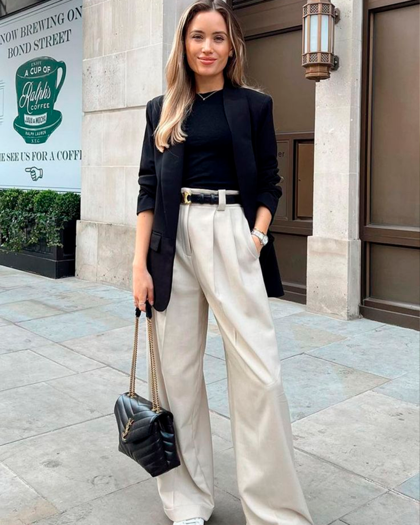 Use com calça de alfaiataria off white ou bege + camisa fluida. O contraste do tĂȘnis com a alfaiataria cria um visual atual e sofisticado.
