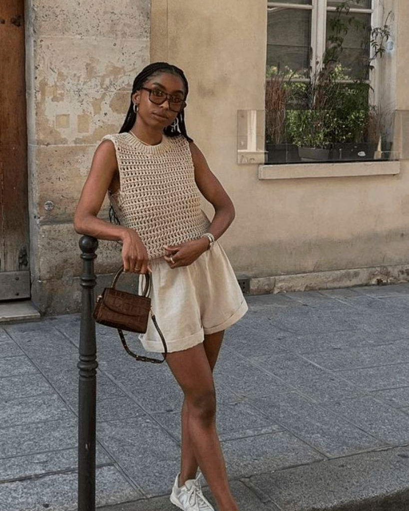 Aposte em short de alfaiataria + camisa oversized ou tricÎ leve. O sneaker finaliza com personalidade e informação de moda.