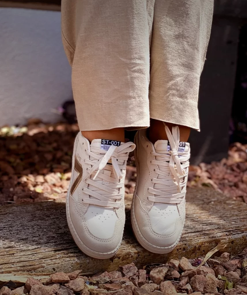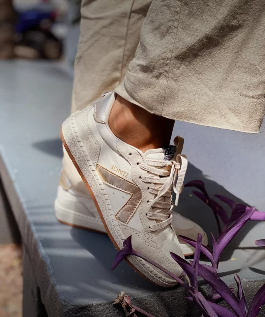 TĂȘnis Schutz ST 002 Couro Off White e Dourado: o sneaker fashion que pode elevar qualquer look! 😍