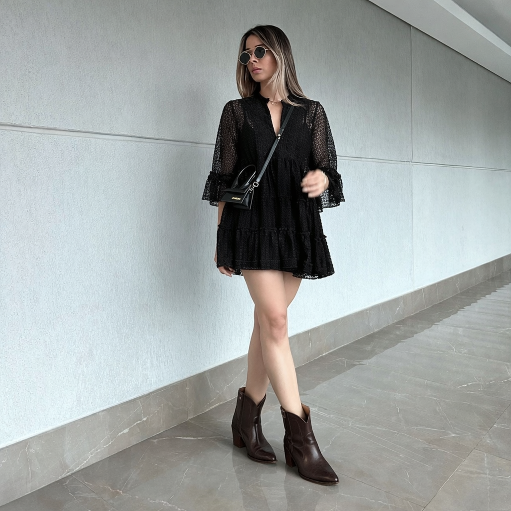 Look 4: Vestido Curto + Bota Western