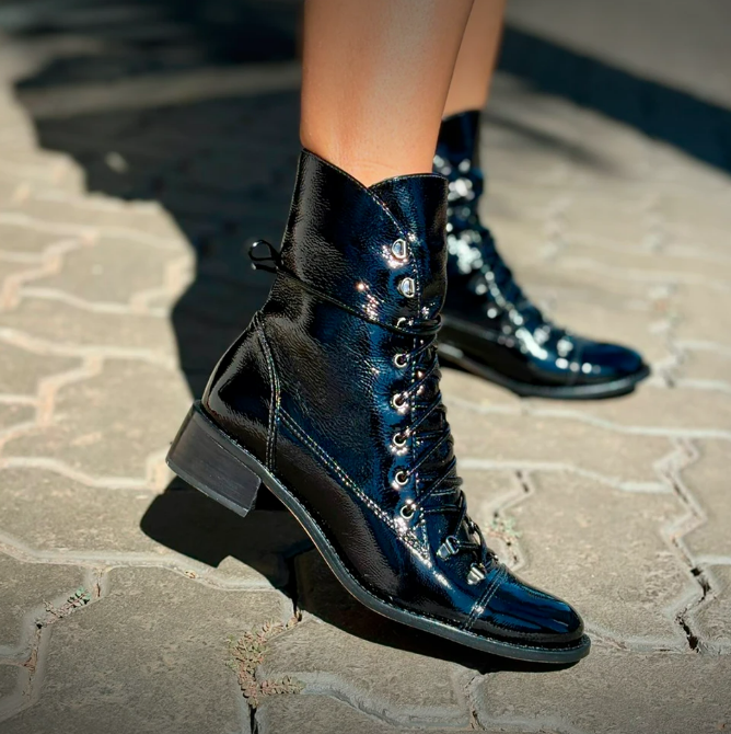 O coturno voltou ainda mais forte em 2026, e na versão verniz preto ele adiciona um brilho luxuoso ao look mais casual. Combinado com jeans, cria o equilíbrio perfeito entre descolado e estiloso.